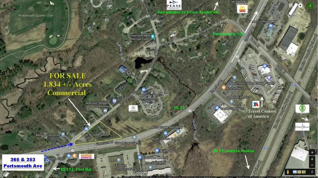 The Ownership is offering 2 abutting properties. R21-67 & R21-66. One lot consists of Suds-N-Soda Store location and the other currently has a single family home on it. Both Lots Combined is 1.8+/- acres with approximately 1049' feet of road frontage on Rt 33 and Portsmouth Avenue. Great visibility, high traffic at a controlled intersection.