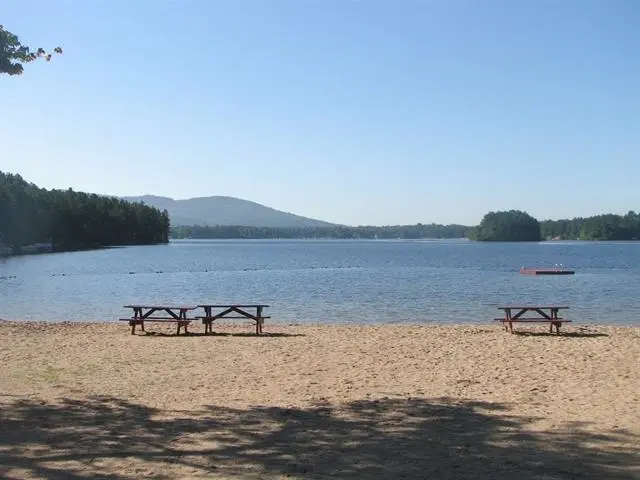 Lake Ossipee Village. Discover your dream retreat in this contemporary home, featuring 4 bedrooms, 3 full baths, 2 living rooms, mudroom, office, laundry and a newer detached two-car garage. Enjoy access to a beautiful sandy beach on Broad Bay, Ossipee Lake! Expanded in 2002, this home boasts a luxurious primary suite with a private bath, jet tub, separate shower, double sink vanity, and walk-in closet. Relax on your private back deck, complete with a six-person hot tub. The first floor features an open layout, highlighted by a spacious living/dining area with a brick hearth and wood stove, cathedral beamed ceilings, and sliding glass doors leading to a private front deck. The new kitchen is a great place for gathering with a breakfast bar peninsula .A versatile second bedroom or office and a full bath complete the main level. Upstairs, find two additional bedrooms and a third full bath, all overlooking the airy living space below. The recently refinished lower level includes a finished family room, bonus room/office and a generous unfinished area for storage or a workshop. Recent updates include a newer metal roof, new water heater, new carpet and an updated septic system. This well-maintained home is move-in ready and perfect for creating lasting memories! Don't miss out on this exceptional opportunity.