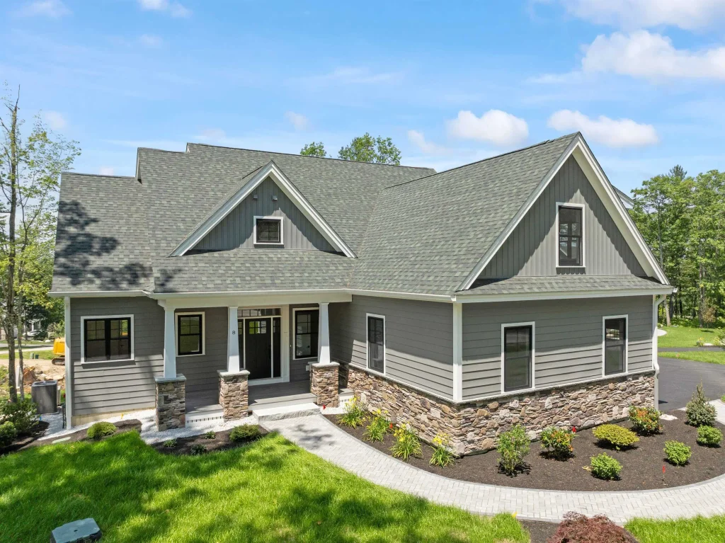 Welcome to this stunning "New Construction" Lake Winnipesaukee access home located in the prestigious Meredith Bay gated community. Spanning over 3,000 sq ft, this exquisite home boasts 4 bedrooms and 4.5 baths. All bedrooms are en suites. The first-floor primary suite provides convenient single-level living, while the gourmet kitchen showcases Thermador appliances, an island overlooking the open living space, and a floor to ceiling granite fireplace, the perfect place to unwind after a day of nearby skiing or boating. The open concept main level is great for entertaining. With one of its suites on the main level, it is set up for one level living if one chooses. The covered porch off the dining area will be great for those nice summer nights. Boasting a 2 car garage and full walkout basement (can be finished), storage will never be an issue. As a resident of Meredith Bay, you'll enjoy an array of exceptional amenities, including access to Akwa Marina: beach, pool, volleyball, a seasonal on-site restaurant, gym, tennis/pickleball courts, and miles of groomed walking trails, ideal for outdoor enthusiasts and those seeking a vibrant community lifestyle. Do not miss your chance to own this remarkable property in a sought-after location in the NH Lakes Region. Close to golfing, hiking, skiing, marinas, many restaurants, plus everything else the Lakes Region has to offer.
