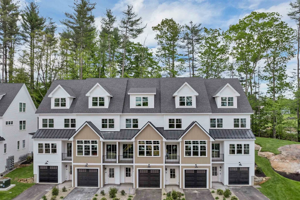 Located in New Hampshire's picturesque Lakes Region, this newly constructed townhouse offers optional water access, thanks to a partnership with North Water Marine, complete with convenient boat valet services. This home features 3 bedrooms, 2.5 bathrooms, an oversized garage, and over 1,800 square feet of thoughtfully designed living space. The open-concept living and dining area boasts 9-foot ceilings, large windows, and views of Lake Winnipesaukee; perfect for both entertaining and relaxing. An impressive stone-surround electric fireplace adds warmth and elegance to the living area, while surround sound speakers elevate the ambiance in both the kitchen and primary en-suite. The chef-inspired kitchen is equipped with GE Café appliances, quartz countertops, a Kohler porcelain farmhouse sink, and an elevated backsplash with premium tiles, adding a stylish, modern touch. Step outside to the private patio, enclosed by privacy fencing, ideal for grilling or simply enjoying the fresh New Hampshire air. Upstairs, you’ll find two comfortable bedrooms, a full bathroom, and a convenient laundry room. The primary suite features a spacious en-suite bathroom with a walk-in shower, walk-in closet, and a striking nickel-gap-surround electric fireplace. Additional built-ins and a dedicated creative workspace provide excellent functionality, while the premium garage features epoxy flooring, a trim package, & an electric heater. Please note, the pictures shown are of the model home.