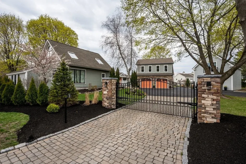 Rare spacious two-family home in North Hampton less than 5 miles from the ocean. Set behind lighted stone columns & remote-controlled iron gates with a cobblestone-accented driveway, this unique property offers a flexible layout ideal for multi-generational living or rental income. The main home with large heated 2 car garage with 10’ ceilings features 3 bedrooms, including a first-floor bedroom/office with full bath, and a sunny kitchen, dining, and living area with powder room that opens to a deck and nicely landscaped fenced in backyard. The primary bedroom has cathedral ceilings and a large walk-in closet. Upstairs there is a full bath with tiled walk-in shower; and another large bedroom that includes a unique lofted space with full staircase access—perfect as a reading nook, hideout, or homework zone—and built-in desk and shelving. The completely renovated (2024) 3BR/2BA apartment includes a first-floor bedroom and three-quarter baths on each level, in unit laundry and has its own paved driveway and patio. The new detached one car garage has 10-ft ceiling and, unfinished space above with future potential to connect to the main house. Additional highlights: town water, 2000-gallon septic system (2009), 2 large sheds, brand-new pavement, mature landscaping, and proximity to Route 1, I-95, beaches, shopping, dining, Hampton Airfield and a Day Care & just a 1/2 mile from the walking/biking Rockingham Rail Trail! Let your tenants help pay your mortgage!
