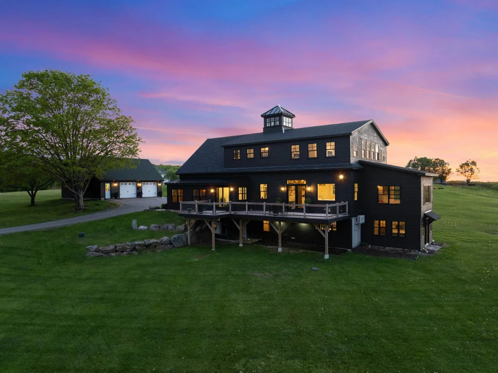 Wake up to 180° unobstructed views of the Belknap Mountains from this extraordinary residence on exclusive Frisky Hill, a private cul-de-sac with only five homes. Set on 22.86 acres with direct trail access, this property offers privacy, history, and modern luxury less than 90 minutes from Boston. Originally an apple barn, the home was completely renovated in 2024 by Garrett Hill Construction with award-winning craftsmanship. The centerpiece is a soaring great room with Marvin windows and French doors opening to a 500 sq ft Brazilian hardwood deck—perfect for sunrise coffee or sunset entertaining. The chef’s kitchen features dual quartz islands, Bosch appliances, and a walk-in pantry. The primary suite includes a marble bath with steam shower, soaking tub, and walk-in closet. Additional bedrooms, a cupola-lit landing, and a lower-level ADU with kitchen and sunroom provide flexible living. A detached garage with finished upper level offers space for a wellness studio, office, or retreat. Close to Gunstock Mountain, the Lakes Region, and within an award-winning school system, this is more than a home—it’s a lifestyle and a legacy. Private showings by appointment only.