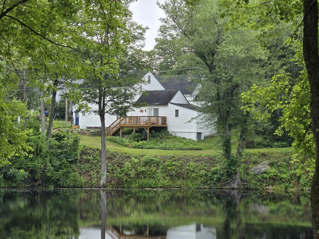 RIVERFRONT w no flood insurance required!! Nestled along the banks of the Contoocook River, this charming 3-4 Bdrm 1.5ba (plumbed for full 2nd) Colonial offers a rare blend of historic character and thoughtful updates, with documented history dating back to 1800, and 111 feet of serene water frontage. Watch herons, eagles, and playful river otters from your brand-new deck—your own private oasis just steps from town. Step inside to discover original wide pine floors secured with authentic square nails, and beautiful tin ceilings that preserve the home’s timeless appeal. This well-maintained property is in excellent condition, featuring a newer architectural shingle roof, vinyl siding, energy efficient windows, and natural gas heating. Brand new gas hot water heater and city water/sewer. Enjoy the convenience of first floor laundry, and flexible living options with a potential first floor bedroom or office. Upstairs, the spacious primary bedroom offers two generous closets, while the "secret" attic provides great storage or future expansion potential. Stone walls, blooming lilacs, and the peaceful sights and sounds of the river surround this gem, all within walking distance to downtown shops, restaurants, and amenities. Close to I93 and shopping. This is more than a home, it’s a slice of heaven in the heart of town. Don't miss this rare opportunity to enjoy waterfront living with vintage charm. Kayaking, tubing, fishing even the potential for a dock!