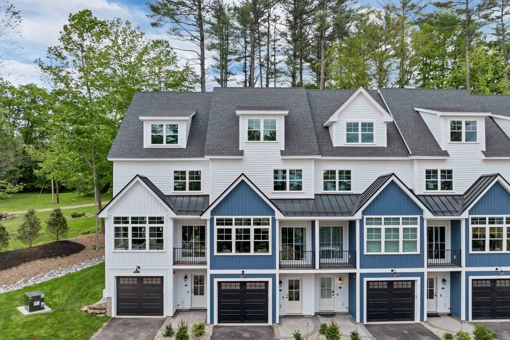 Located in New Hampshire’s picturesque Lakes Region, this fully furnished, move-in ready townhouse is ready for you to settle in. Just bring your sentimentals and clothes. Enjoy water views of Lake Winnipesaukee, along with optional water access through a partnership with North Water Marine, which includes convenient boat valet services. This newly constructed home offers 3 bedrooms, 2.5 bathrooms, an oversized garage, and over 1,800 square feet of thoughtfully designed living space. The open-concept living and dining area features 9-foot ceilings, expansive windows, and scenic lake and wooded views, making it perfect for entertaining and relaxing. A white oak surround electric fireplace adds warmth and elegance, while built-in surround sound speakers enhance the atmosphere in both the kitchen and primary en-suite. The chef-inspired kitchen includes GE Café appliances, quartz countertops, a Kohler porcelain farmhouse sink, and an upgraded tile backsplash for a sleek, modern finish. Step outside to the private patio with parital privacy fencing, ideal for grilling or simply enjoying the fresh New Hampshire air. Upstairs, you'll find two spacious bedrooms, a full bathroom, and a convenient laundry room. The primary suite offers a walk-in closet, a walk-in shower, and a spacious en-suite bath. Additional built-ins and a dedicated creative workspace add functionality, while the premium garage features epoxy flooring and polished trim package.