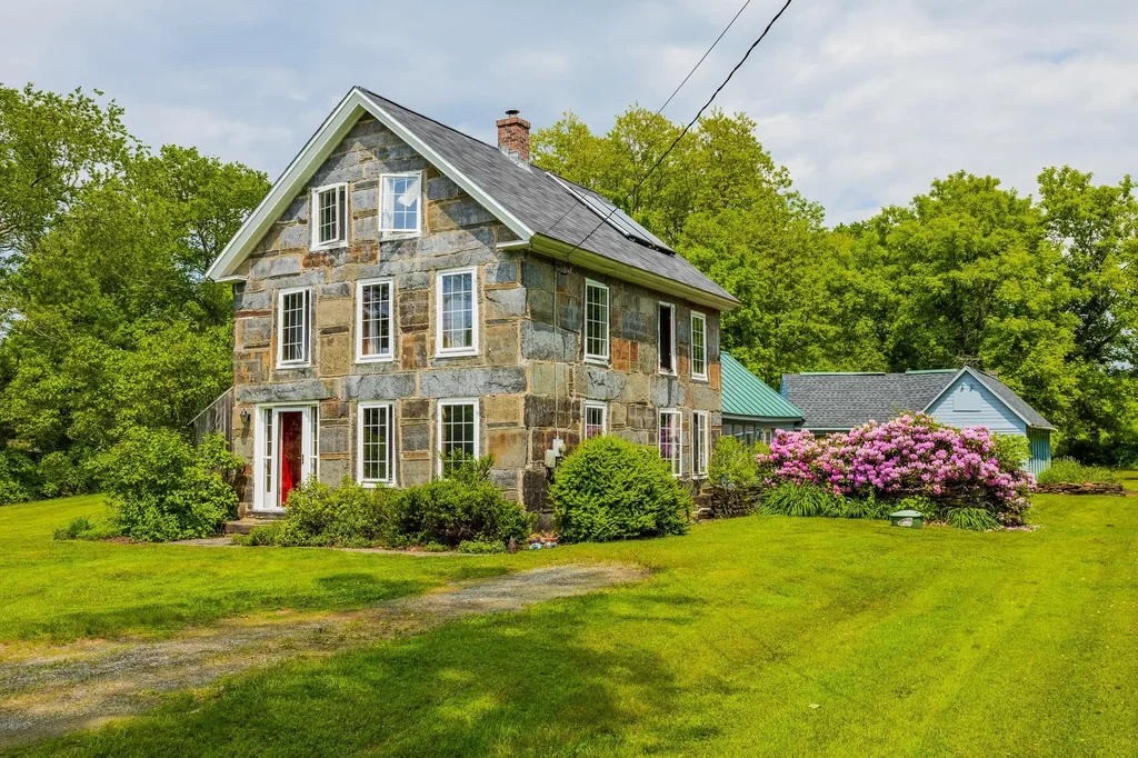 Step back in time with this classic stone home, circa 1812, full of timeless charm and character. This historic gem includes 130 feet of owned Connecticut River frontage just across the quiet country road—perfect for kayaking, fishing, or simply enjoying the peaceful water views. Set on a level 0.98-acre lot, the home has 10 rooms - 1st level with a cozy living room with wood stove, country kitchen with dining nook, a spacious formal dining area, bedroom, half bath, sun porch, workshop space and storage room. The second level features a spacious primary bedroom, office and full bath. The third level features a large bedroom and play/office space. Features maple flooring on the main level, wide pine flooring on the upper levels, deep farmhouse window trim, adding warmth and character throughout. The .98 acre lot features mature landscaping, established garden spaces, a workshop/shed and patio, creating a serene and functional outdoor environment for gardening, hobbies and relaxation. Just a 10-minute bike ride to Post Pond and Cedar Circle Farm, minutes to I-91. With its iconic stone exterior and authentic New England charm, this is a rare opportunity to own a piece of history in a truly special setting. Delayed showings begin on 06/21/2025.