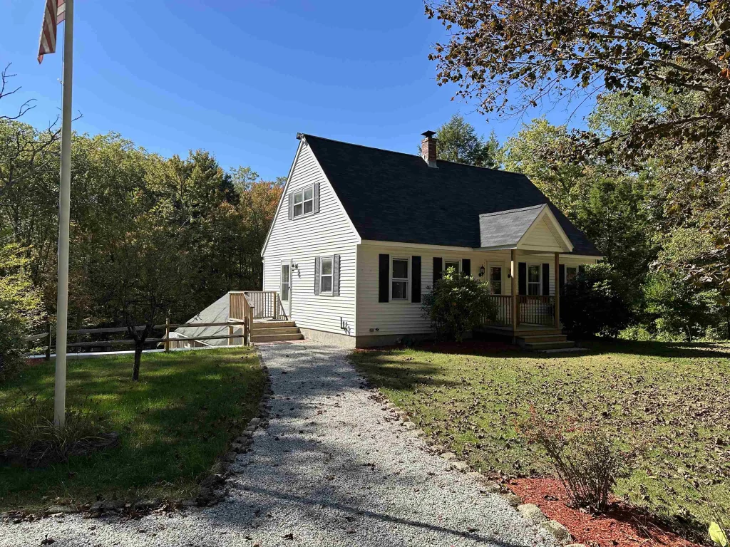 Charming Cape-style home set on 2.4 acres in a peaceful country setting. Located on a town-maintained road, this well-kept 3-bedroom, 1.5-bath residence offers over 1,300 sq ft of living space. The first floor features a separate bedroom and a laundry room, eat in kitchen open to the living room, complemented by newly installed hardwood floors. The second level includes two additional bedrooms and a half bath. A walk-out daylight basement provides natural light and potential for expansion. One of the standout features of this property is the detached, heated 3-car garage—perfect for car enthusiasts, hobbyists, or anyone in need of substantial storage. With generous space, heat, and easy access, it’s ideal for year-round use and adds exceptional value to the home. Additional highlights include a covered front entry, well-landscaped yard, and a fenced-in kennel—great for pet owners. Enjoy privacy and comfort with convenient access to town amenities.