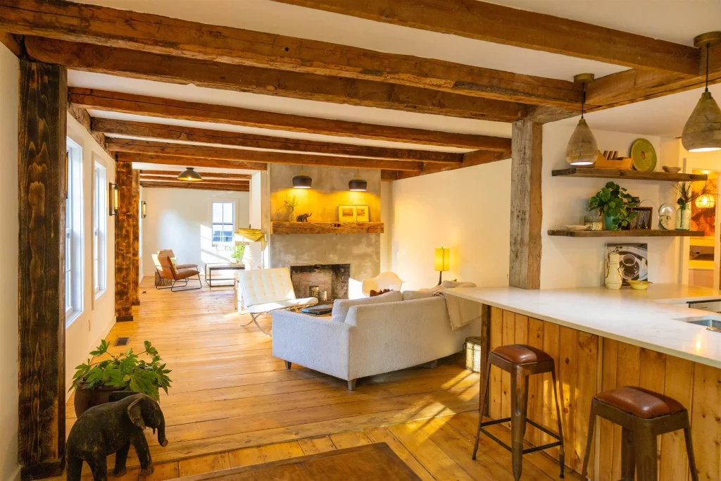 An Iconic North Sandwich Village Home—Reimagined for Modern Living. This in-town residence masterfully blends historic charm with contemporary sophistication. Fully redesigned, the home features new systems—walls, electrical, plumbing, kitchen, and baths—making it completely move-in ready. Upstairs, the double-room primary suite is joined by two additional bedrooms and a luxurious full bath with a soaking tub and separate walk-in shower. For those seeking single-level living, the main floor offers that option with a newly added ¾ bath featuring a walk-in oversized fully tiled shower adjacent to a bright and well sized bedroom. The stylish chef's kitchen, accented by distinctive flooring, opens through French doors to a spacious porch overlooking a private back yard flanked by stone walls. Inside, the kitchen flows seamlessly into a dramatic entertaining area anchored by a sleek modern fireplace, while a versatile library or study completes the first level. Set on over an acre of land (which also includes a fabulous barn), this property is both a private sanctuary and a statement of style in the heart of North Sandwich Village. Residents enjoy nearby access to Squam Lake along with the shops, dining, and community life of Center Sandwich and many other amenities available exclusively to residents of Sandwich and North Sandwich. Schedule your private showing today.