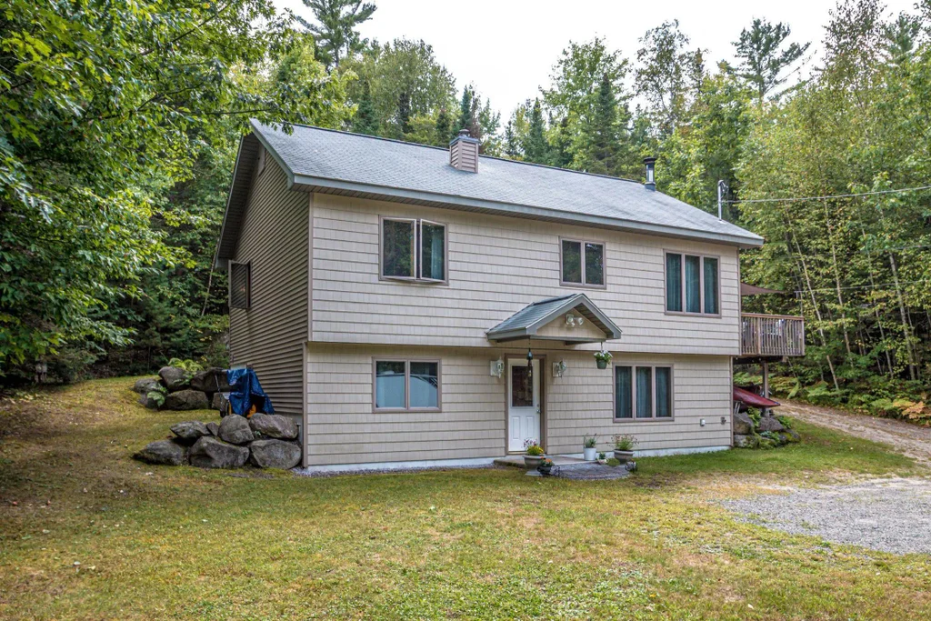 Exquisite custom-built home on 2.2 acres offers privacy and tranquility. Open-concept living is enhanced by striking cathedral ceilings and a beautiful stone wrapped gas fireplace. Culinary enthusiasts delight in the gourmet kitchen equipped with modern lighting, solid wood pull-out shelving cabinetry, and abundant countertop space. Incredible primary bedroom suite features spa-like setting with luxurious bath complete with soaking tub, as well as a spacious walk-in double head shower. A skylight adorned with beautiful mosaic tile provides natural light. All closets throughout home fitted with automatic lighting. Venture down to discover a spacious family room wired for surround sound with a designated spot for a projector screen to elevate entertainment nights. This versatile space includes a custom wet bar area and a new wood stove. Discover an additional bedroom and full bath on this level, perfect for guests or family. Separate laundry room with exceptional storage space also on this level. Efficiency and comfort are prioritized with a Buderus FHW heating system for radiant floor heat and Anderson wood-wrapped windows to keep the elements out. Enjoy an expansive deck complete with lighting, sun shade and storage under. Exterior vinyl shake siding is low-maintenance and allows you to spend more time enjoying your surroundings and less time on upkeep. This custom-built gem is more than just a house--it's a lifestyle waiting for you to embrace where luxury meets adventure.