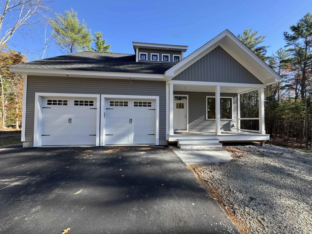 Back on markets Buyers home sale fell through. Here's your 2nd chance! PRIMARY SUITE ON 1ST FLOOR! Updated Photos 10/18. This 2,107 sq. ft. new construction home was thoughtfully designed for easy main-level living, featuring a spacious primary suite, 2.5 baths, and high-end finishes including hardwood throughout. The open-concept layout boasts soaring 9’ ceilings, an L-shaped kitchen with quartz countertops, and a bright dining area that flows into the living room. Enjoy your morning coffee in the sunny 4 room overlooking the backyard, or relax outdoors on the composite deck and covered porch. Upstairs, you’ll find two generously sized guest bedrooms and a full bath—perfect for family or visitors. The walkout basement offers excellent potential for future living space. Built with energy efficiency in mind, this home includes a Rinnai on-demand hot water heater and today’s energy-smart construction standards. Located in low-tax Tuftonboro’s scenic Mountain Shadows neighborhood, you’ll love the mountain views, ponds, and open green space—all just 1.5 miles from Melvin Village with public lake access at Melvin Wharf Beach and boat launch. Tuftonboro offers endless year-round recreation: two public beaches, several boat launches for kayaking and boating, scenic hiking trails, and vibrant foliage drives. In winter, enjoy cross-country skiing and ice fishing. Minutes to Wolfeboro, local ski areas, and trails, this home delivers both modern comfort and timeless Lakes Region charm.
