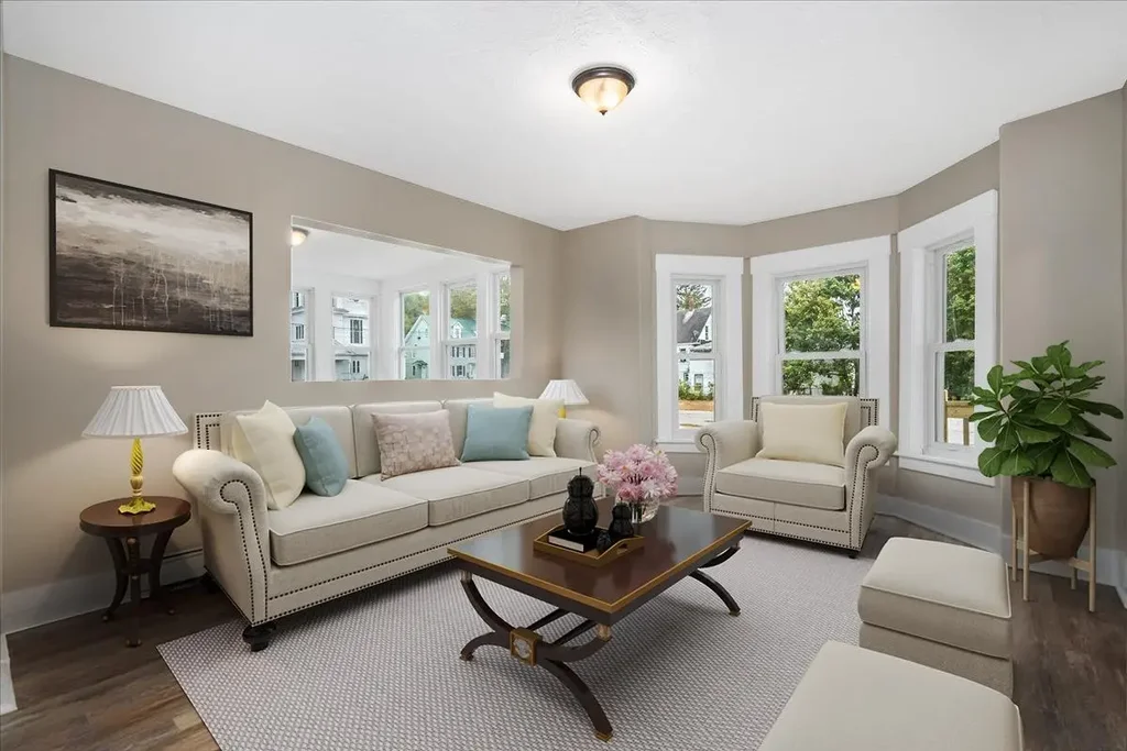 Step into timeless character with this beautifully renovated home that blends old-world charm with modern convenience. Featuring five spacious bedrooms, this property offers ample room for family, guests, or a home office setup. This house could even be suitable for multigenerational living! Recent updates include a permitted new deck, newer furnace, fresh flooring throughout, and plush new carpet that adds warmth and comfort. The bathrooms shine with new vanities, while the entire home has been freshly painted, giving it a crisp, inviting feel. Outside, enjoy the curb appeal of brand-new siding, updated doors, and a welcoming new front porch. Inside, you'll love the new lighting fixtures that brighten every corner and the gorgeous quartz counter-tops that elevate the kitchen’s style. Located just minutes from highways, shopping centers, and popular restaurants, this home offers both tranquility and convenience. Public/Water sewer! With solid bones and thoughtful upgrades, it’s ready to welcome you home. Seller is a licensed Realtor. Some photos are virtually staged.