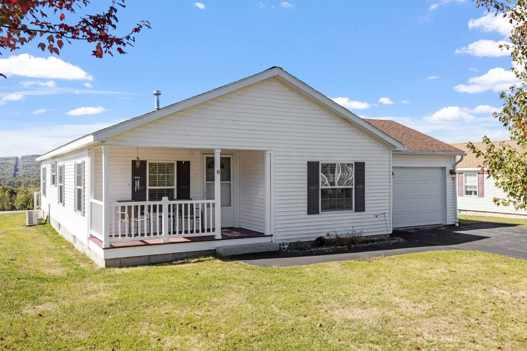 Welcome to Mountain View Estates, where comfort meets convenience in this charming 55+ community. This single-level living gem offers spacious accommodations with 2 bedrooms and 2 baths. This open concept layout provides a seamless flow, featuring a large kitchen complete with a center island, tiled backsplash, plenty of cabinet and countertop space, adjacent dining room and oversize living room with propane fireplace. Easy access to the back deck, the perfect spot for relaxation, birdwatching or to simply enjoy the view especially the beautiful sunsets. The front porch provides another option to sit and enjoy to socializing with friends and family. At the end of the day, retreat to the primary suite with a spacious bedroom, walk-in closet and ¾ bath with an easy step walk-in shower, double sinks and linen closet. One generous size additional bedroom and a full bath. First floor laundry room. Attached one car garage which provides ample storage space and/or workshop space. Community perks include a club house, mail house, walking trails, maintained roads, snow removal, landscaping/mowing and trash, making this property a sought-after haven. Don’t miss this opportunity!