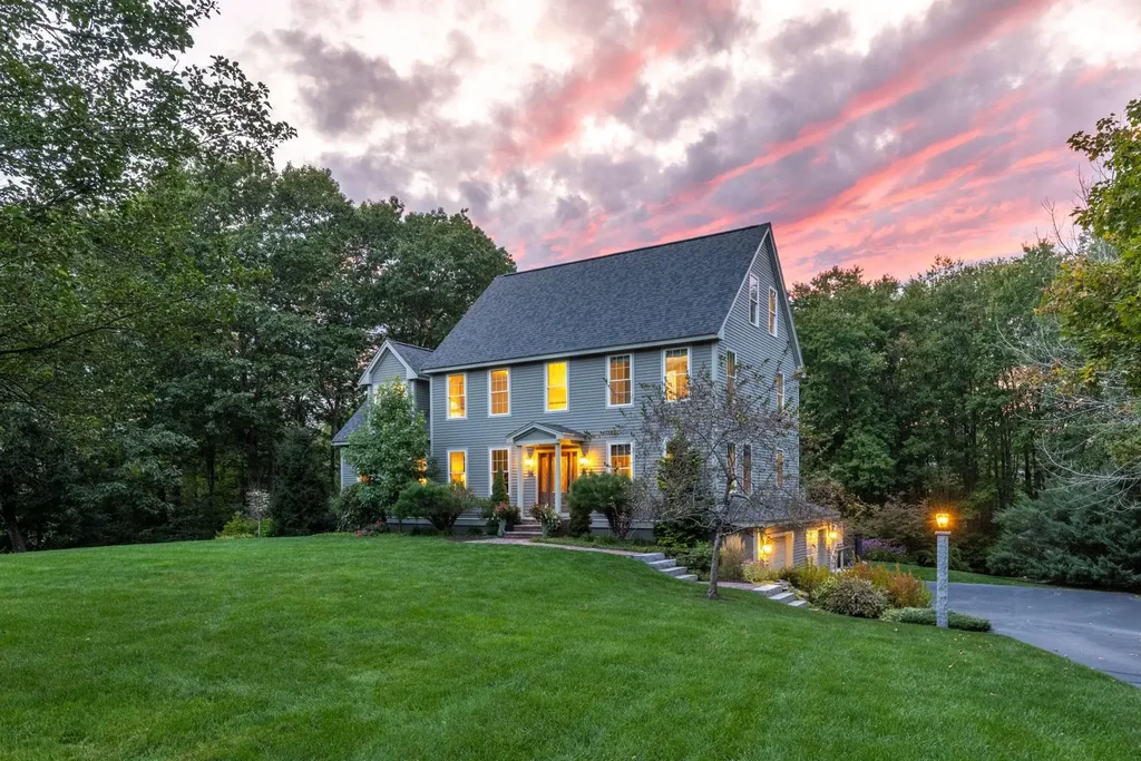 Set on a private 2-acre wooded lot in one of Newfields’ most desirable neighborhoods, this colonial offers timeless craftsmanship with over $250,000 in updates. It is a home as functional as it is unforgettable. Arrive to gorgeous landscaping and new exterior lighting, then step inside to gleaming oak floors and a graceful winding staircase. The main level has an open flow ideal for entertaining, with a large kitchen featuring a leathered granite island, wine fridge, pantry, and modern lighting. The living areas include a cozy fireplace and integrated surround sound.The 2nd floor offers a primary suite with upgraded shower, jetted tub, and two walk-in closets - alongside 2 additional bedrooms.The third floor expands the living space with two more bedrooms, a ¾ bath, and attic storage. The finished walk-out basement provides a complete town-approved in-law suite ADU with kitchen and 3/4 bath - perfect for multi-generational living or guests. Step outside to resort-style living: an in-ground gunite pool with travertine pavers, outdoor kitchen, 2 screened porches, and surround sound - creating an ideal space for gatherings. Peace of mind comes with recent updates: a newly shingled roof, on-demand generator, oil furnace, central A/C, tankless hot water heater, pool pump, wireless access points, Kinetico reverse osmosis system and water softener, and more. This location offers easy access to Exeter, Portsmouth, Route 101, and I-95 - blending convenience with a secluded setting.